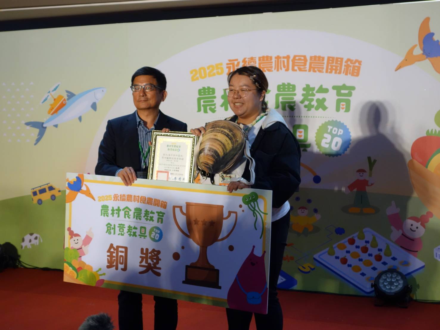 本次入選「2025農村食農教育創意教具TOP20」的單位,包含來自全國的參展者,主題涵括農林漁等,透過遊戲闖關展現各式臺灣農業的活力與創意!獲得金獎的隊伍為菣香~台江;集元果農場、畯富農場則獲得銀獎,並由蟹蟹的秘密、寰雲食農遊樂園及彰化海洋食研基地獲得銅獎。