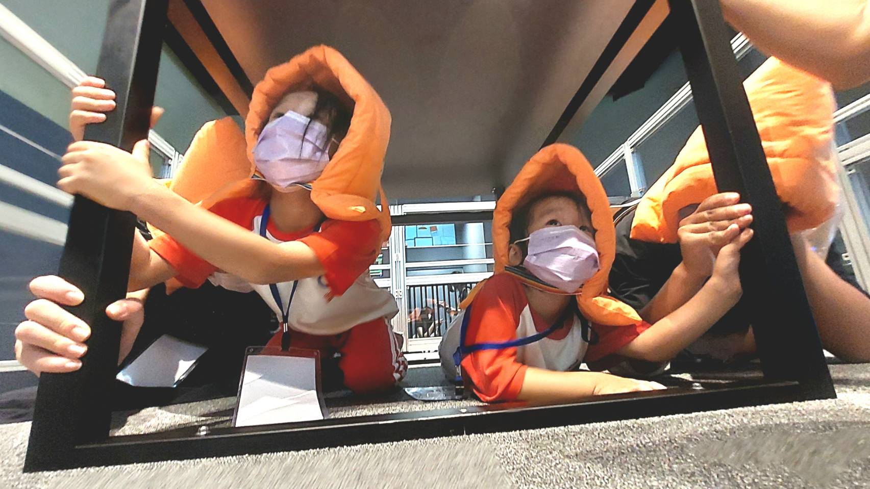 體驗目的:教導「趴下、掩護、穩住」避震三步驟