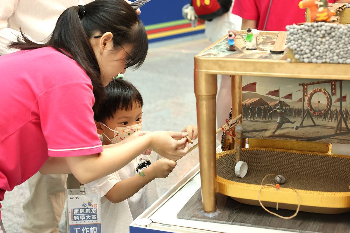 「好奇心和創意是 Sony 品牌重要的元素之一,Sony Taiwan 進一步以小朋友喜歡的『玩具』 為概念舉行索尼創意科學大賞,期待藉由用科學創作自己的玩具激發台灣孩子對科學的好奇心 和熱情。」Sony Taiwan 董事長千葉雄三於成果展開幕式中分享;以企業品牌精神「為了下一代 For the Next Generation」為基礎,賽事免費開放全台國小 3~6 年級學童組隊參加,第 13 屆由來 自國立嘉義大學附設實驗小學的「JMJ 科學訓練家」以結合拳擊、馬拉松、羽球和棒球等四種運 動的作品摘下桂冠:「雖然創作的時候很辛苦,但很高興自己真的把想像中的東西做出來,變成 好玩的玩具!」成員陳冠甫開心地表示。