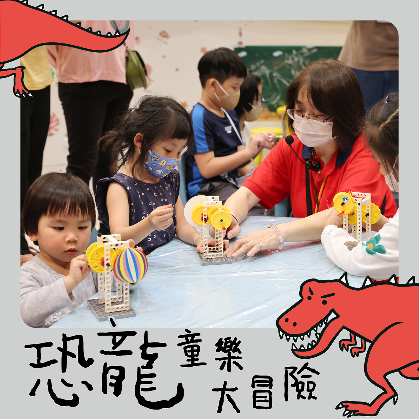「恐龍 STEM」探索科學魔法神奇瞬間與視覺暫留的幻覺: B1F兒童科學園長廊設置了「恐龍 STEM」挑戰站。小小冒險家們可以親自動手實驗,會驚奇地發現大齒輪帶動小齒輪時,轉速瞬間提升的「變速魔法」,這正是生活中腳踏車的原理。