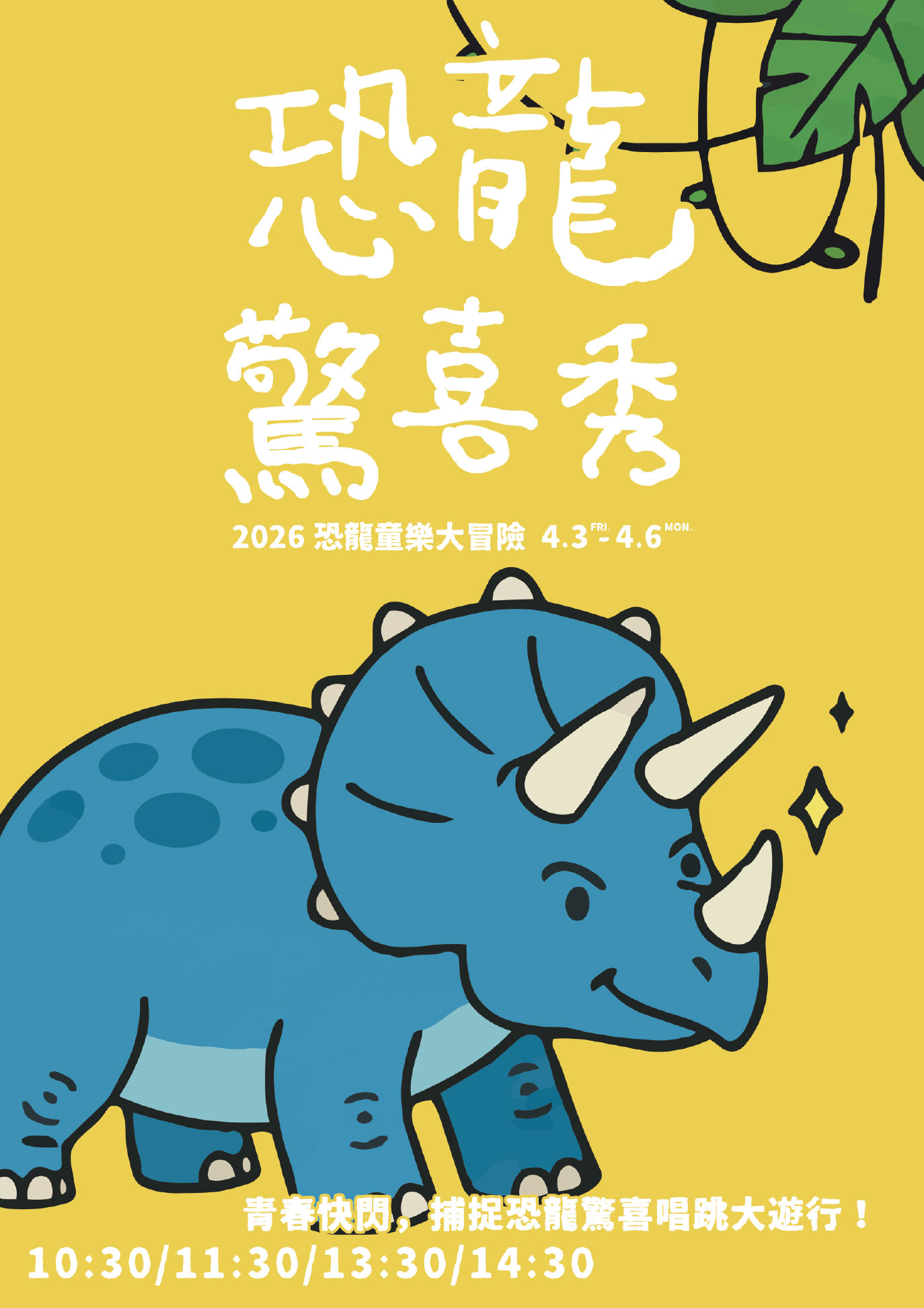 「恐龍驚喜秀」青春快閃跳唱大遊行:聽到充滿活力的樂節奏響起,千萬別眨眼,那是全場最嗨的「恐龍驚喜秀」要準備快閃了,這場秀是由樹德家商幼兒保育科所設計,每天定時會出現4場驚喜快閃舞蹈。孩子們可以近距離捕捉恐龍驚喜唱跳,跟著牠們一起歌唱扭動身體喔。