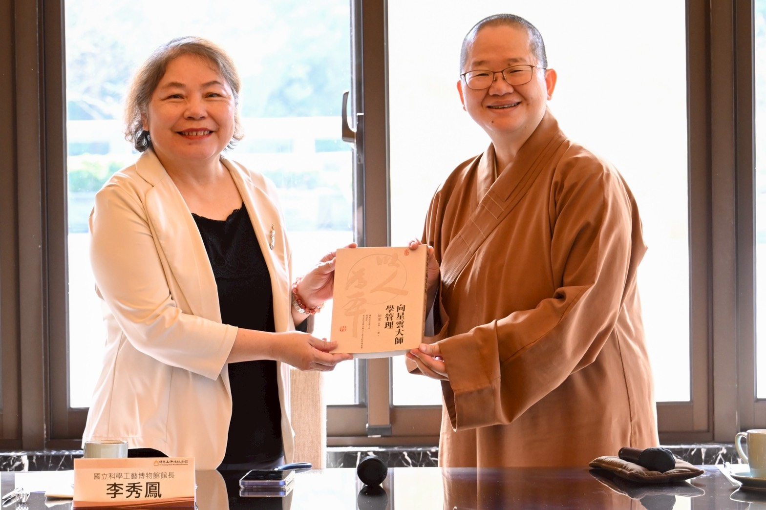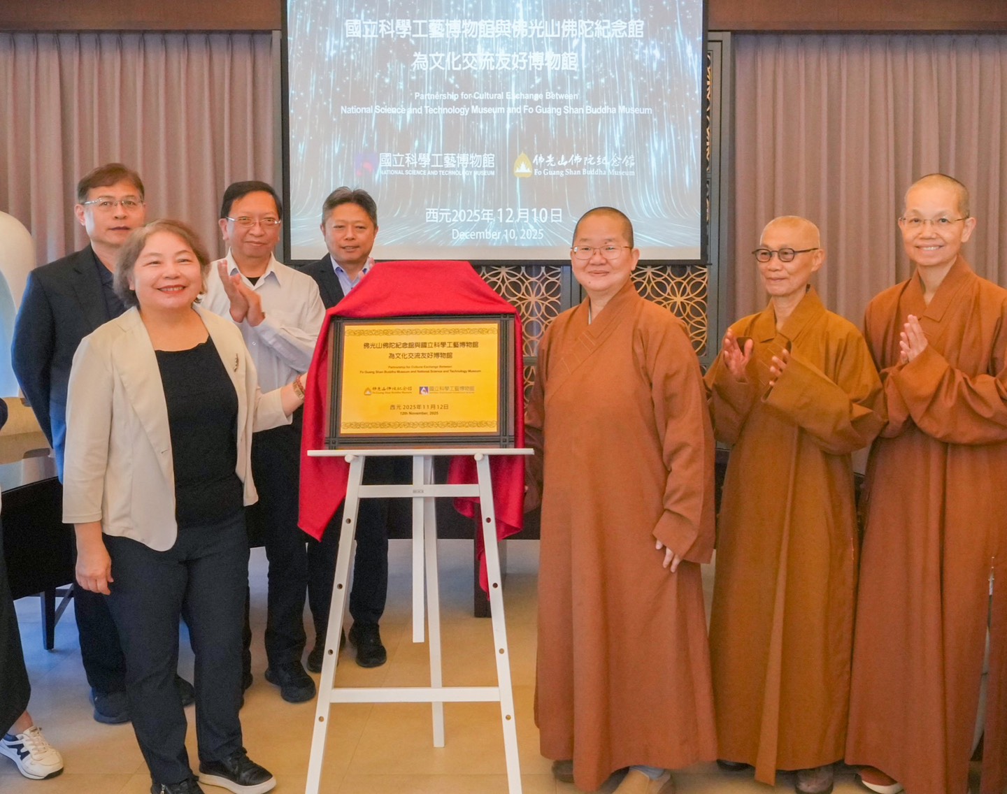 國立科學工藝博物館(科工館)10日上午於佛光山佛陀紀念館(佛館)禮敬大廳與佛館共同舉行合作備忘錄(MOU)簽署儀式,正式宣布兩館在既有良好合作基礎上,將攜手邁向更具永續性的跨領域合作,推動科普教育、人文發展與社會共好。儀式由佛館館長如常法師與科工館李秀鳳館長共同主持,雙方貴賓簽署、揭牌與互贈紀念品,現場氣氛隆重莊嚴,象徵科學與人文的深度對話。