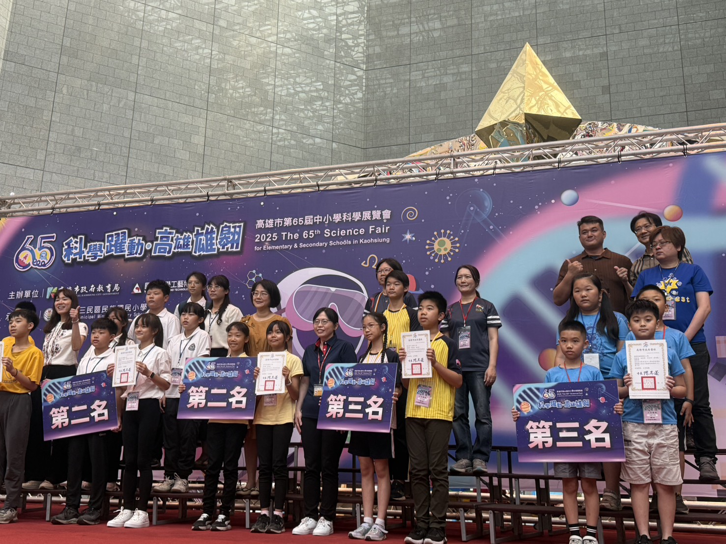 高雄市第65屆中小學科學展覽會,26日上午在國立科學工藝博物館(科工館)舉行頒獎暨開幕典禮,今年共計有國中小高中近400件科學作品參賽,其中選出36件優秀作品代表高雄市參加全國科展;高雄市教育局長吳立森到場表揚得獎師生,鼓勵學生「大膽假設、小心求證」玩科學,同時啟發勇於探索科學奧秘,培養問題解決能力與創新思維。