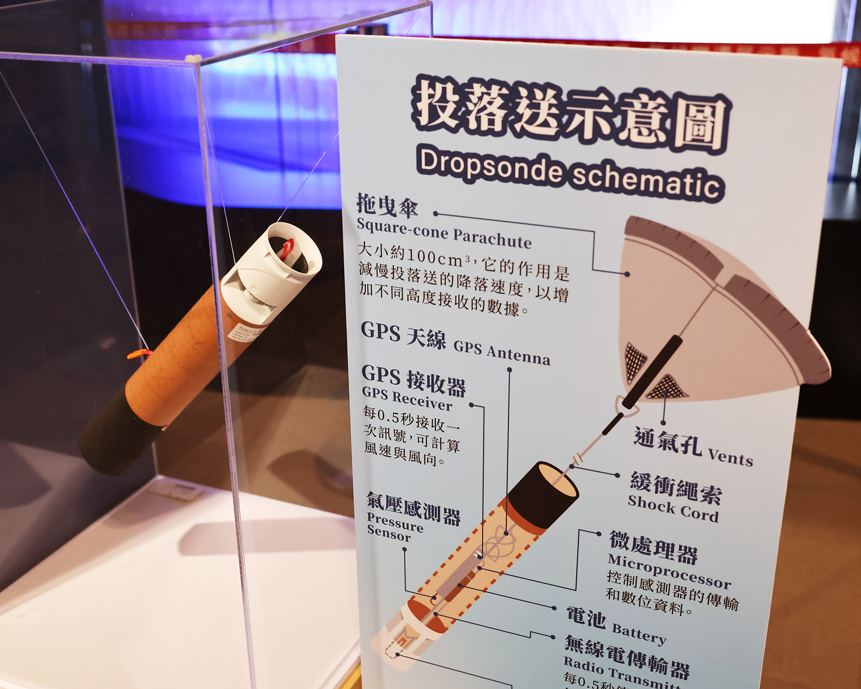 - 投落送:除了衛星和雷達等工具外,如果想知道颱風的更多細節,科學家會利用投落送收集颱風周圍的數據資料。科學家利用投落送收集颱風周圍的數據資料,你知道投落送是如何使用的嗎?