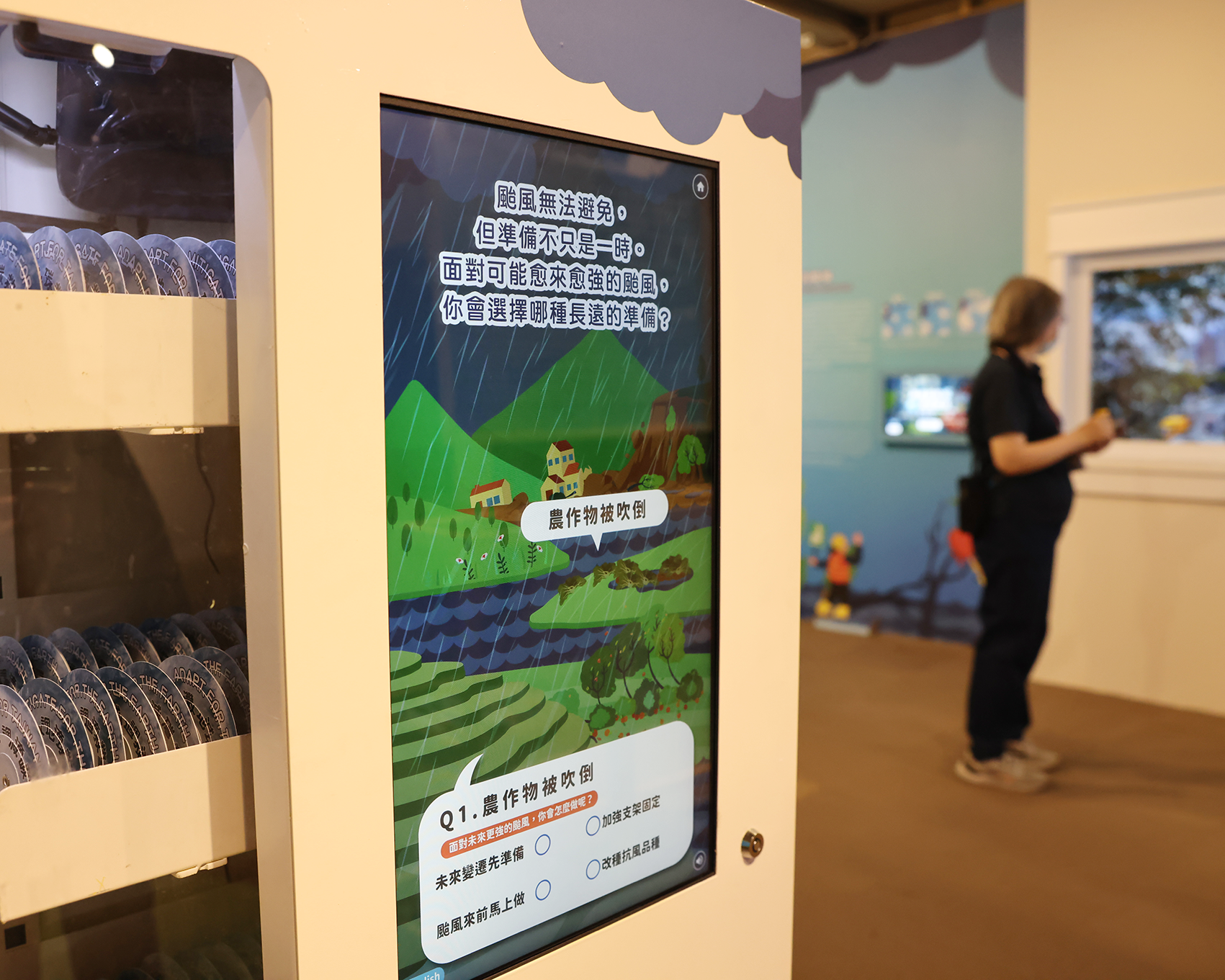 - 風災調適智慧王:觀眾可以比較面對颱風的短期與長期作為,了解防災與調適間的關聯,藉此建立調適思維。