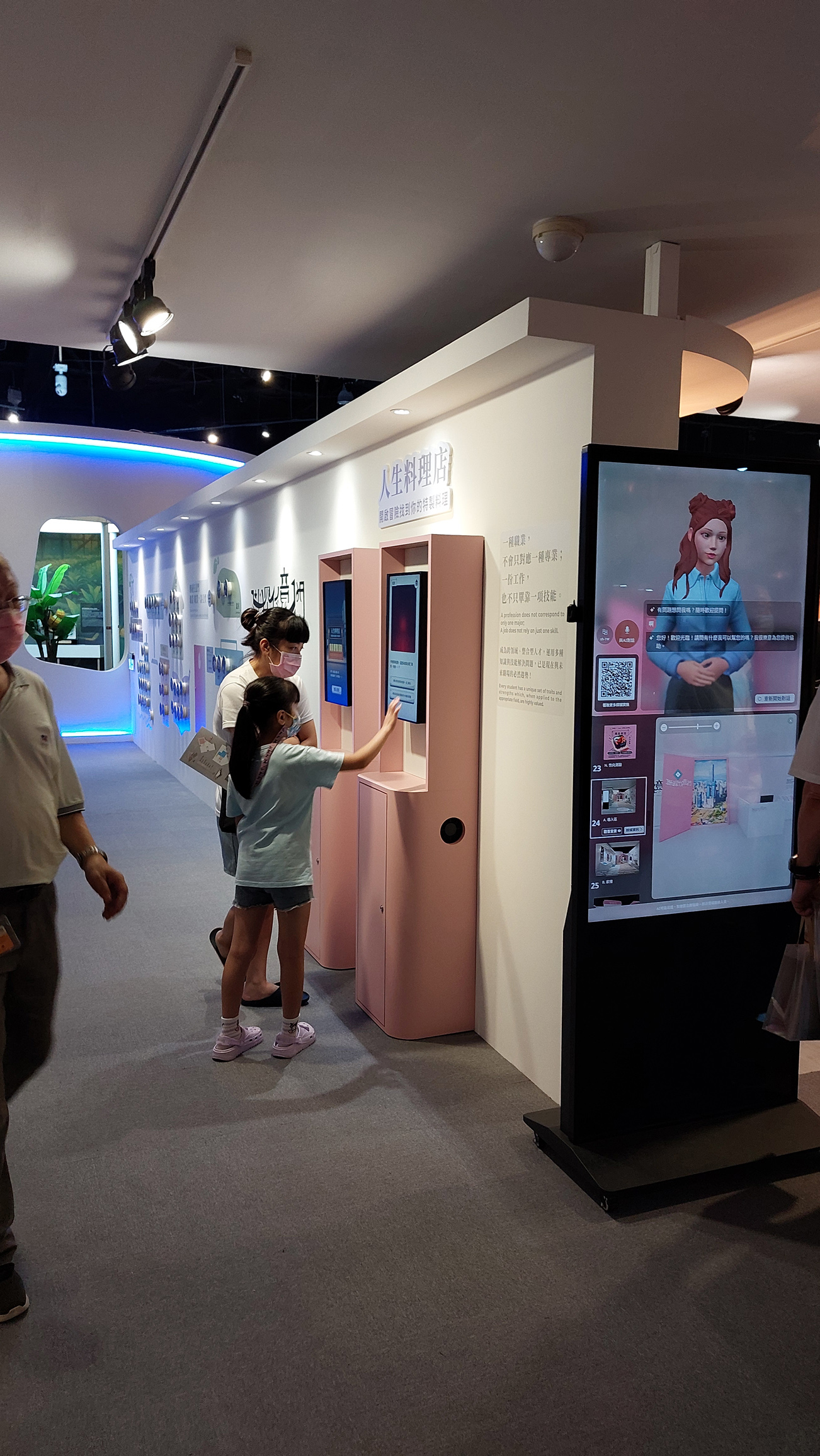 以趣味課程桌面互動導覽為主,如「探探漢堡帝國」、「外語導遊」與「不可思『椅』」,結合創意設計、語言教育與家具製造等職類;並設置「AI繪圖」體驗模擬生成圖像,導入AI與資訊應用科技,培養數位世代的跨域能力。