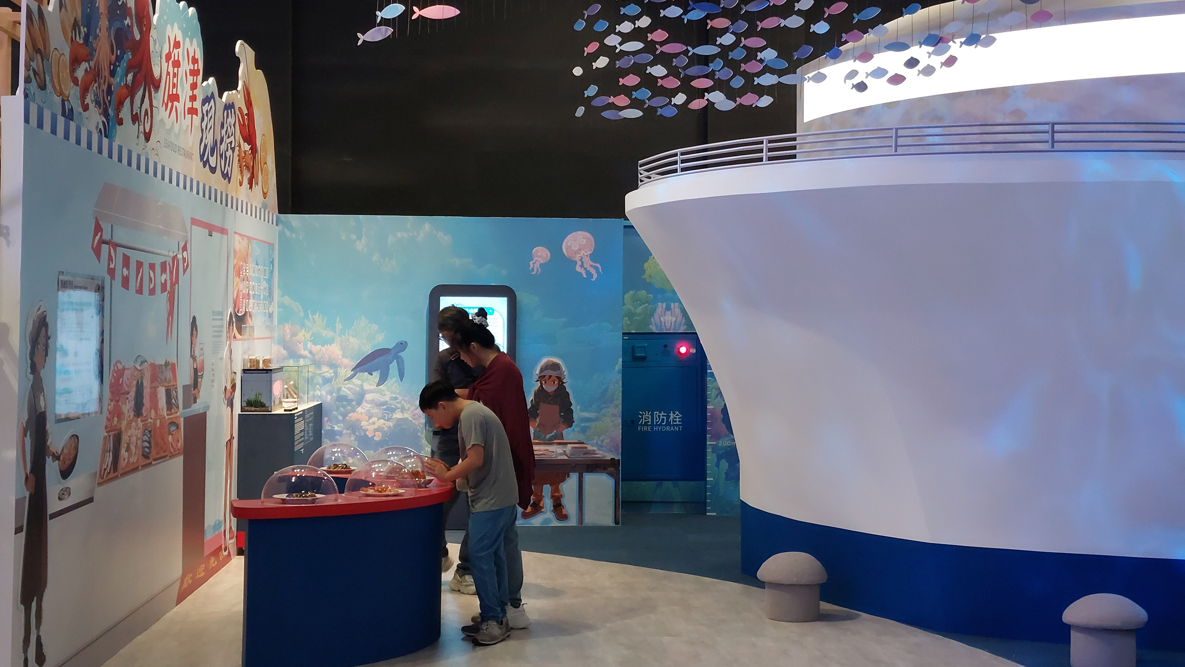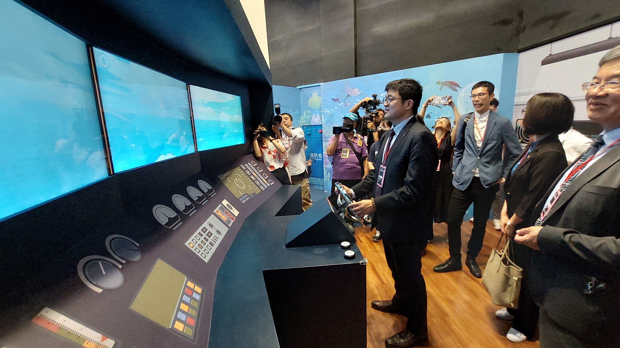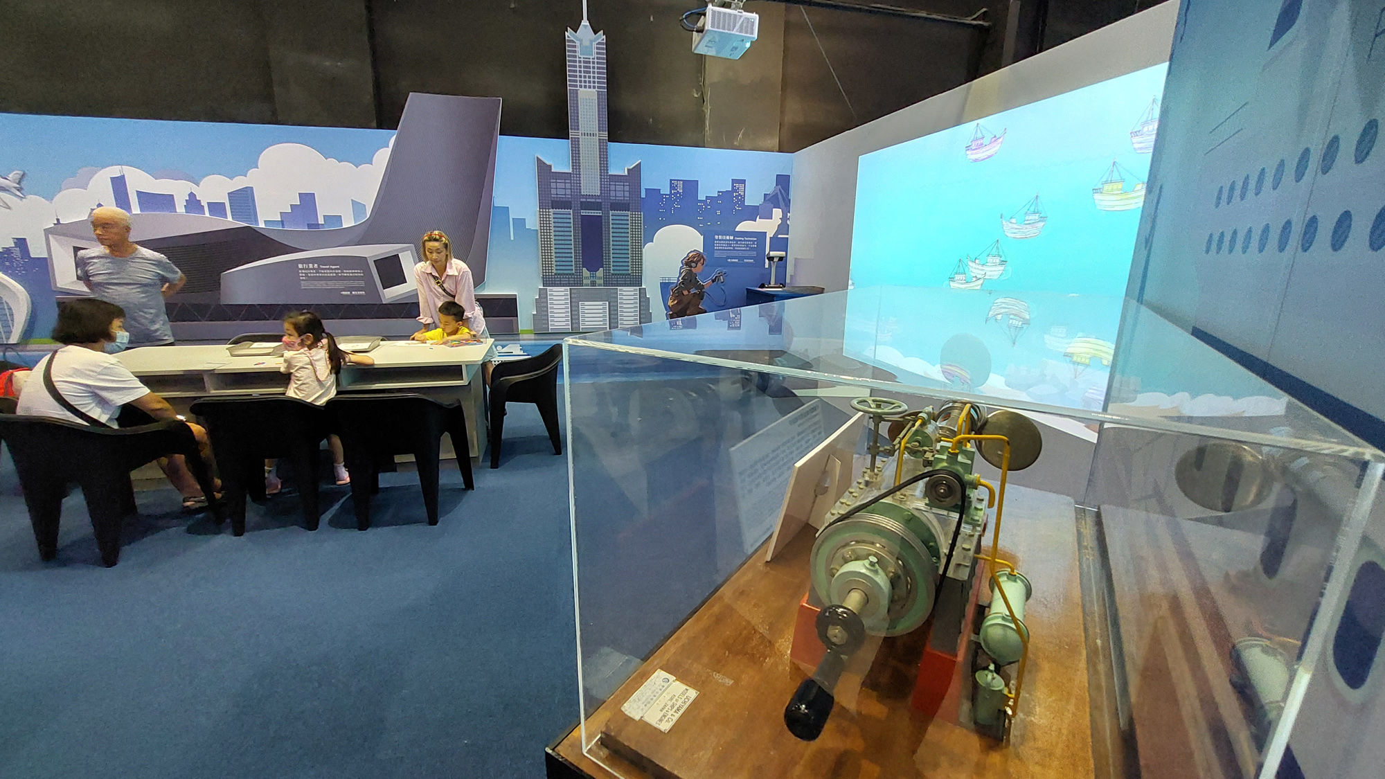 設有「彩繪船奇」互動投影牆,觀眾可自由創作彩繪船隻並即時上牆展示;另有「是的船長!」模擬駕駛系統體驗船舶操作,搭配方向盤互動裝置,寓教於樂;並展示「幼雜漁獲排除裝置」等海洋資源永續設計。