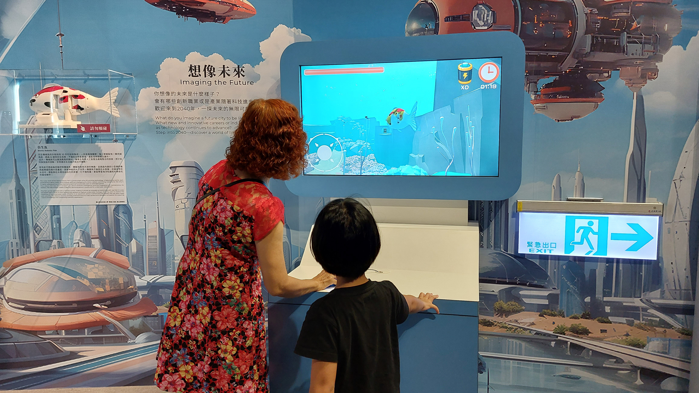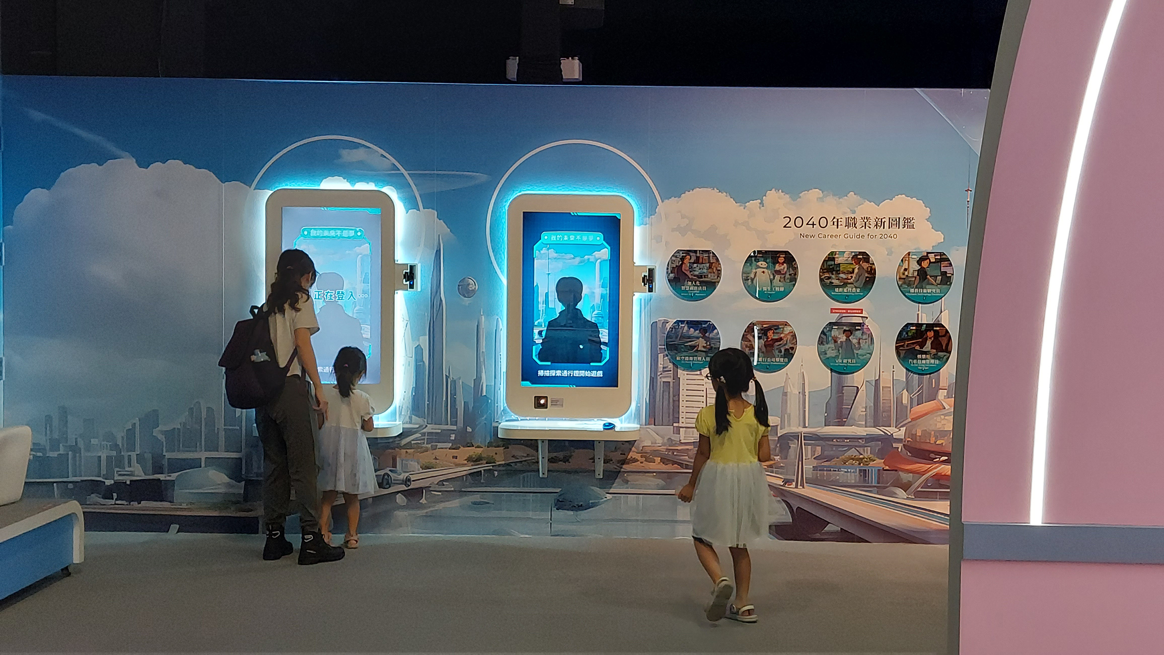 本區設有「仿生魚」互動裝置,搭配「我的未來不是夢」虛擬角色扮演與VR體驗,觀眾可透過鏡頭掃描,生成個人未來職業建議,探索未來可能出現的新興職類與跨域技能需求。