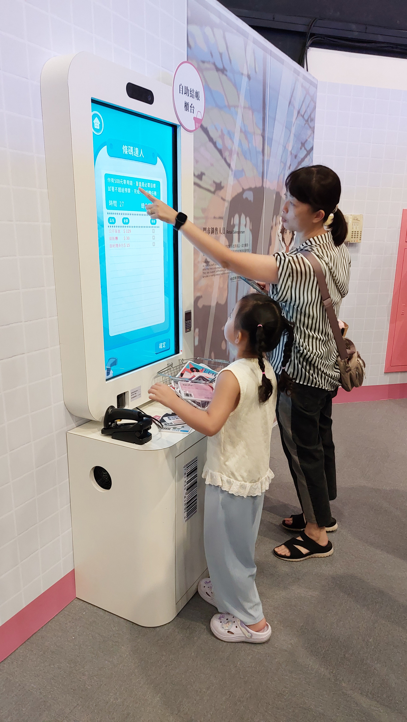 模擬零售環境與智慧製造場景,「條碼達人」讓觀眾體驗商品結帳流程;「MES智慧工廠模組」以工業4.0概念介紹製造業數位轉型,展示現代商業與流通業背後的技職力量。