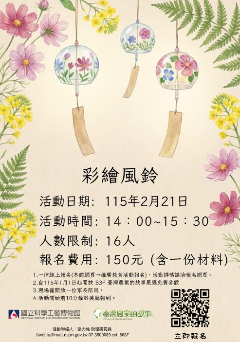 這個二月,科工館特別推出了結合「美感創作」與「田園氛圈」的彩縮風鈴手作體驗!