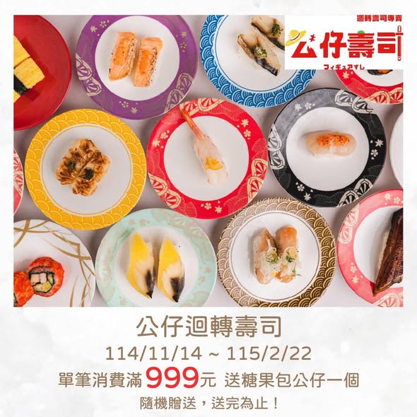 二、科工館地下一樓餐廳-公仔迴轉壽司 推出單筆消費滿999元,立即贈送糖果包公仔一個
