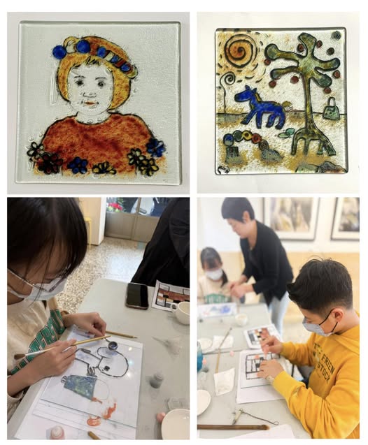 「窯燒琉璃畫」結合繪畫與玻璃工藝,透過玻璃粉彩繪與高溫窯燒,讓色彩與線條在玻璃中自然融合,呈現溫潤又富層次的藝術效果。