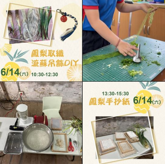 邀請鳳梨纖維文創品牌~一朵花文創工作室來館授課,除了分享鳳梨除了吃還能夠轉變為時尚產業,並帶您透過實際手作提取鳳梨的纖維並製作流蘇吊飾成品(活動宣傳照片由一朵花文創工作室提供)。