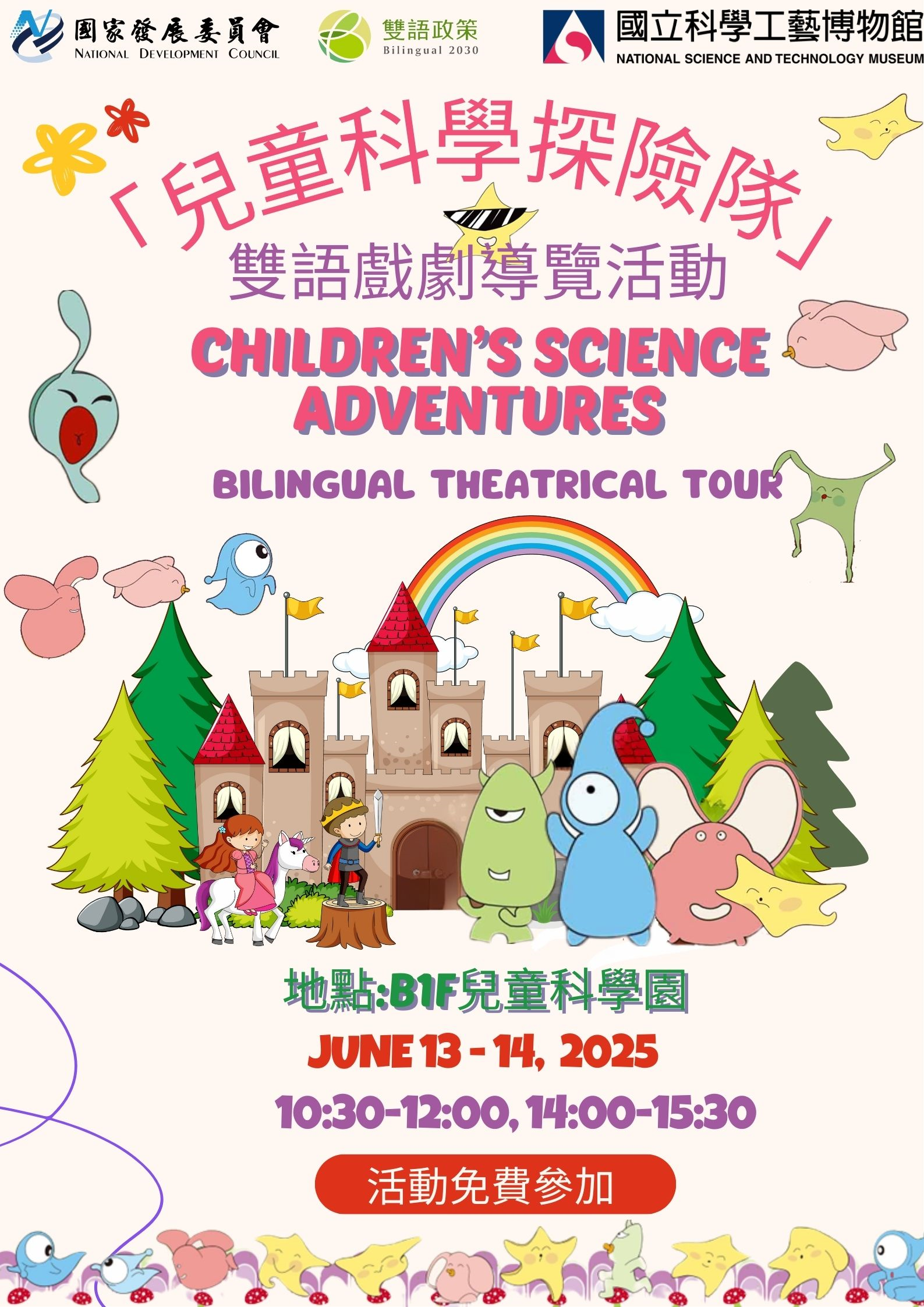 托勒第老師與虹虹公主將化身科學冒險嚮導,透過中英雙語戲劇導覽,帶領孩子們穿越夢想號、奇幻國與FUN城市,用生動故事點燃科學的火花!