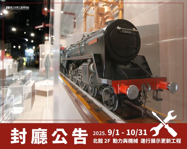 為提供您更好的參觀體驗,2F【動力與機械】展示廳 ,自114年 9月1日起至10月31日期間 進行展示更新作業,東側部分區域暫停營運。