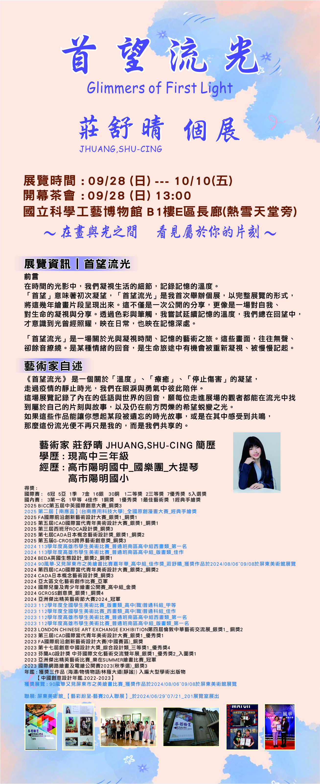 ::: 訂閱/取消訂閱︱回電子報列表︱我要轉寄 熱點行銷 一、搭公車遊科工 優惠活動起跑囉! 即日起至114年12月31日止,搭乘 高雄客運60路公車 (覺民幹線) 來館參觀之民眾,可於公車上取得科工館優惠券 (亦可主動向司機詢問索取),憑【搭公車 遊科工】優惠券參觀科工館可享: 常設展示廳成人 90 元、學生 60 元優惠價 (原價 成人 120 元、學生 90 元) 3D大銀幕電影50 元優惠價 (原價 150 元) 活動洽詢:(07) 3800089 轉分機 8469 蔡小姐 - - - - - - - - - - - - - - - - - - - - - - - - - - - - - - - - - - 二、科工館 x 沐沐MUMU茶飲專賣 (宏南宿舍分店) 享9折優惠 1. 觀眾持本館票根 或 2.手機出示本館會員頁面 3.參觀宏南宿舍的觀眾憑手章 自即日起,享餐飲結帳9折優惠 (冰品除外) 沐沐MUMU茶飲專賣 (宏南宿舍分店) 高雄市楠梓區宏毅一路6號 訂購專線 ▸ 07-3630638 活動自即日起至114年12月31日止 - - - - - - - - - - - - - - - - - - - - - - - - - - - - - - - - - - 三、易奇趣假日於本館一樓大廳商店外販售雞蛋糕(至115年11月30日止) 本館一樓大廳易奇趣商店自即日起至115年11月30日止,假日上午11時到下午5時販售雞蛋糕,數量有限,售完即止,平日無販售) - - - - - - - - - - - - - - - - - - - - - - - - - - - - - - - - - - 四、「首望流光」莊舒晴個展即日起至114年10月10日於北館B1E區長廊展出 「首望流光」是一場關於光與凝視時間記憶的藝 術之旅,亦是一個關於「溫度」、「療癒」、「停止傷害」 的凝望,這些畫面,往往無聲,卻餘音繚繞。是某種情緒的 回音,是生命旅途中有機會被重新凝視、被慢慢記起,作者 莊舒晴結合多媒材藝術創作,展覽作品主要以油畫、水彩畫 及版畫為主。 票價:科工館入場票券 全票$120/學生票$90 檔案下載 搭公車遊科工 優惠活動起跑囉! 科工館 x 沐沐MUMU 首望流光 熱點行銷