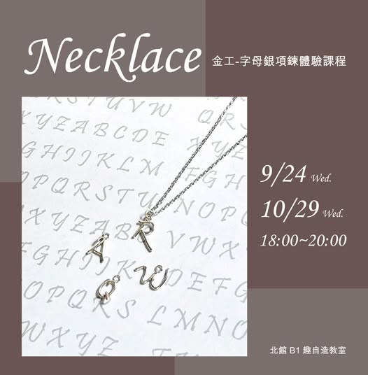 課程將帶你親手打造 字母銀項鍊,不僅能體驗金工製作的樂趣,更能收穫獨一無二的飾品!