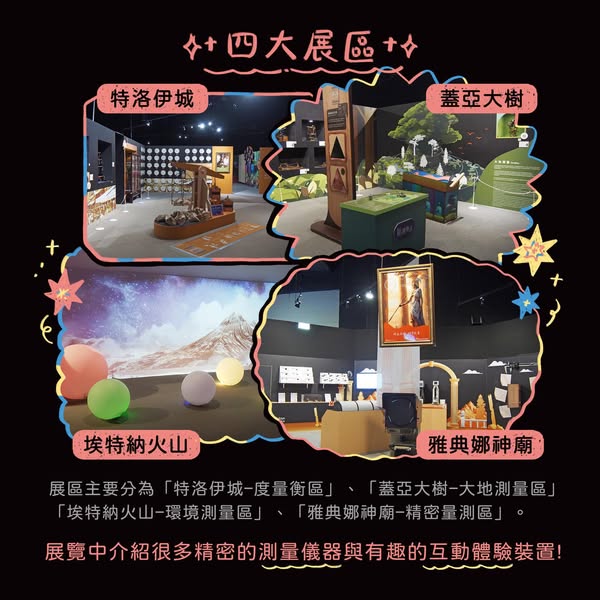 集結70種古今珍稀儀器,透過希臘神話與12星座的展示故事線,搭配多媒體互動以及任務導向,進入量測科學時空。